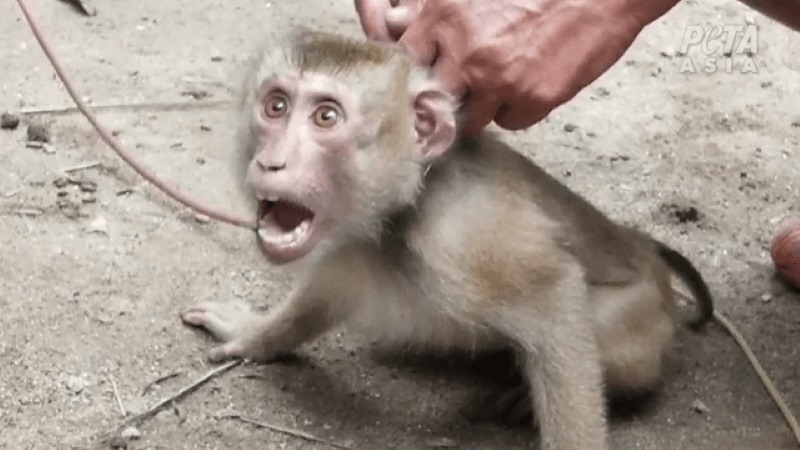 PETA Asia investigations into Thailand's coconut industry revealed terrified, sensitive monkeys kept chained, abusively trained to pick coconuts, and unable to do anything that's natural and important to them. Monkeys who try to defend themselves forcibly have their canine teeth pulled.