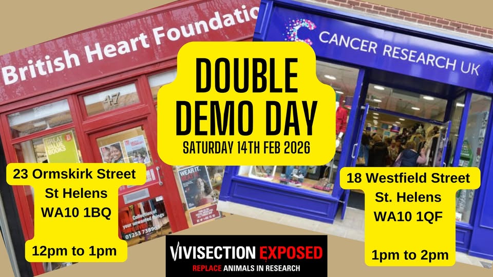 Double Demo Day - BHF and CRUK anti-vivisection protests - St Helens