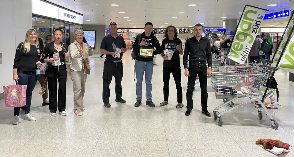 Vegan Aktiv Züri flyert am Hauptbahnhof und sucht das Gespräch mit interessierten Passant*innen.