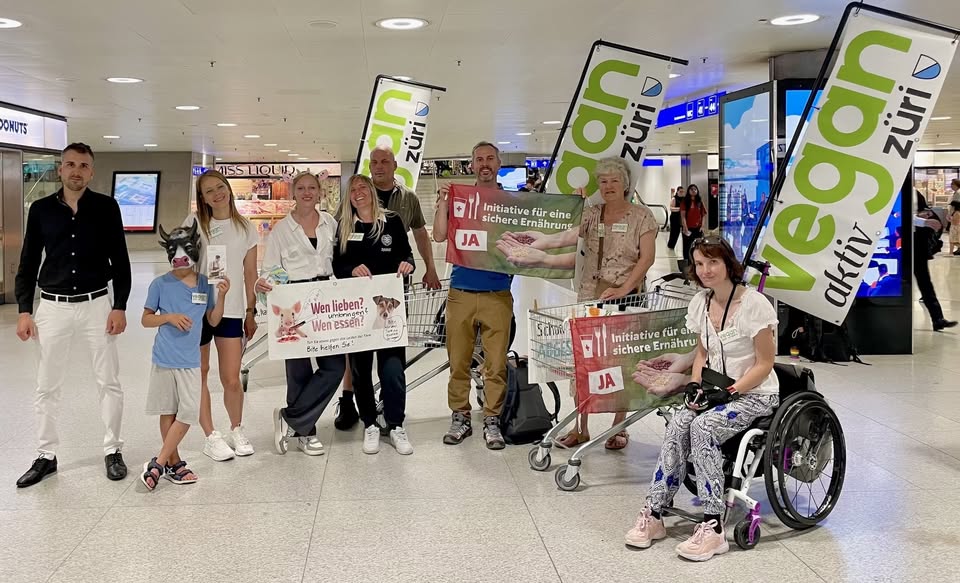 Vegan Aktiv Züri flyert am Hauptbahnhof und sucht das Gespräch mit interessierten Passant*innen.