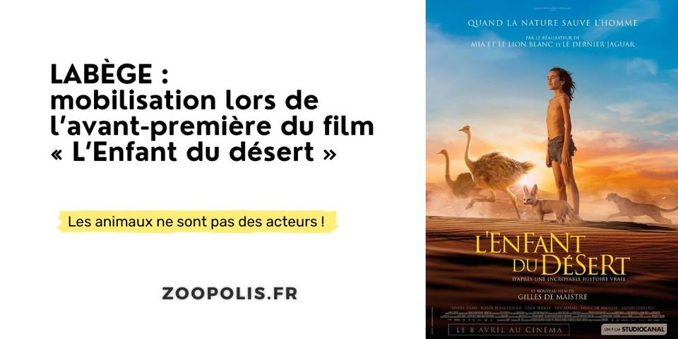 Mobilisation à l’occasion de l’avant-première pour dénoncer l’exploitation d’animaux sauvages captifs pour le film « L’Enfant Du Désert » de Gilles de Maistre.