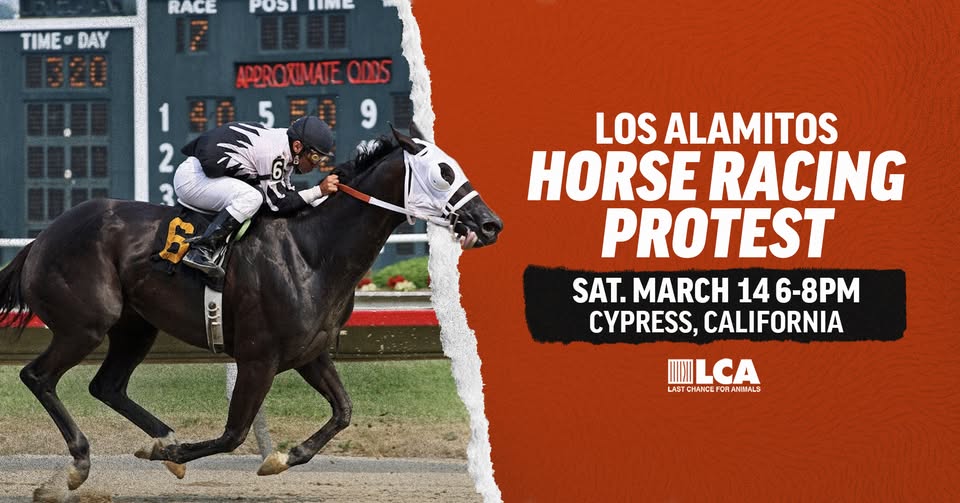 JOIN THE HORSE RACING PROTEST AT LOS ALAMITOS RACE TRACK ON SATURDAY, 3/14/2026