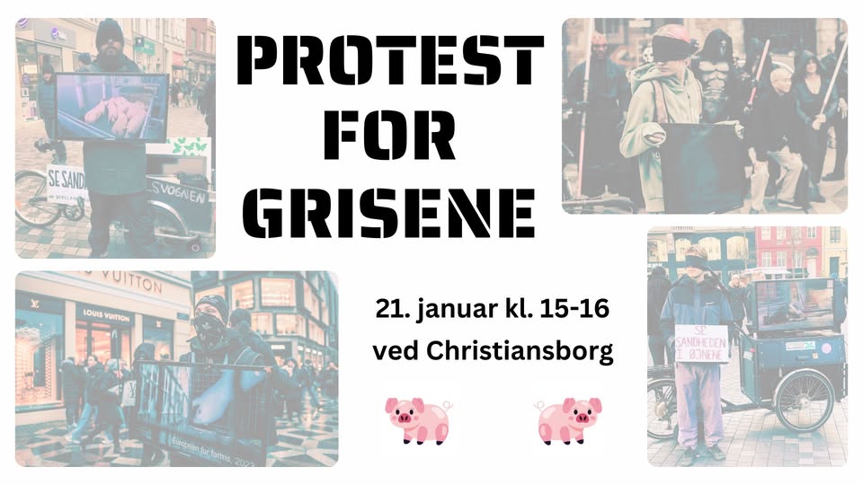 Vi afholder protest for grisene i anledning af, at der er samråd om ulovlig dyremishandling på Christiansborg. Vi kommer til at stå med skilte og tegne med kridt osv. Vi finder os ikke i, hvordan dyrene bliver behandlet! Kom med til protest og sig fra over for dyremishandling.