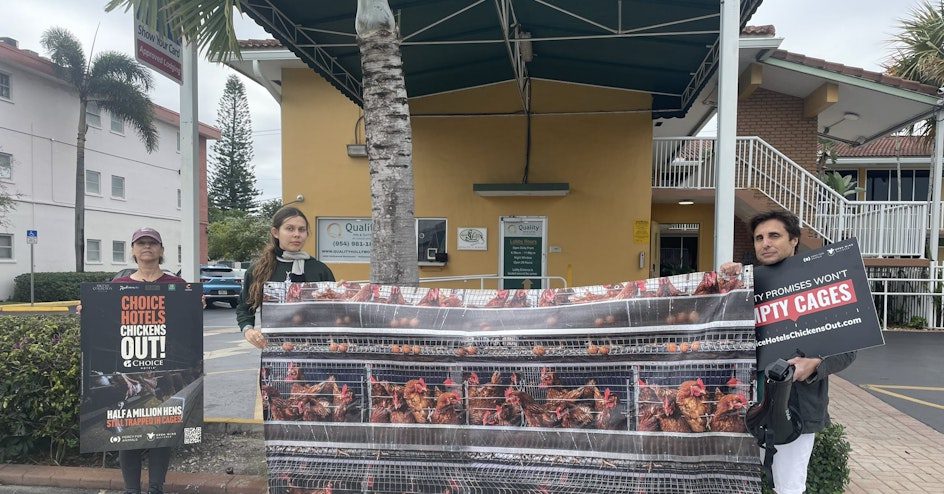 In 2020, Choice Hotels promised to put an end to the horrific practice of putting hens in battery cages for egg production—and yet here we are, in 2026 and they still haven’t followed through on their promise. And to make matters even worse, they’ve also removed the mention of their intended timeline (and any notes of progress) entirely from their website.