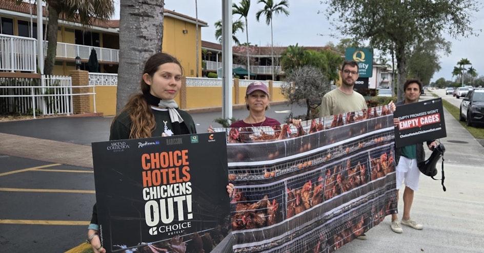 In 2020, Choice Hotels promised to put an end to the horrific practice of putting hens in battery cages for egg production—and yet here we are, in 2026 and they still haven’t followed through on their promise. And to make matters even worse, they’ve also removed the mention of their intended timeline (and any notes of progress) entirely from their website.