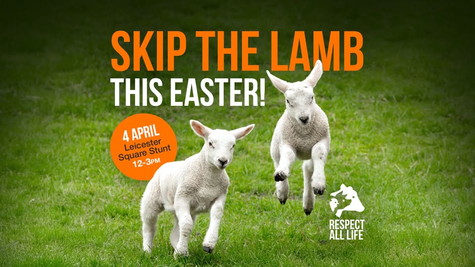 We’re taking to the streets of London on Saturday April 4, 12-3pm, to reveal the harsh reality behind lamb farming. This Easter, we’re encouraging consumers to Skip the Lamb and choose compassion.