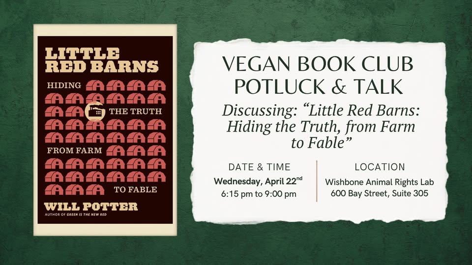 Pick up a copy of "Little Red Barns: Hiding the Truth, from Farm to Fable” (at your local library or bookseller), bring along a yummy plant-based food item, and come ready to discuss this wonderful book with like-minded souls!