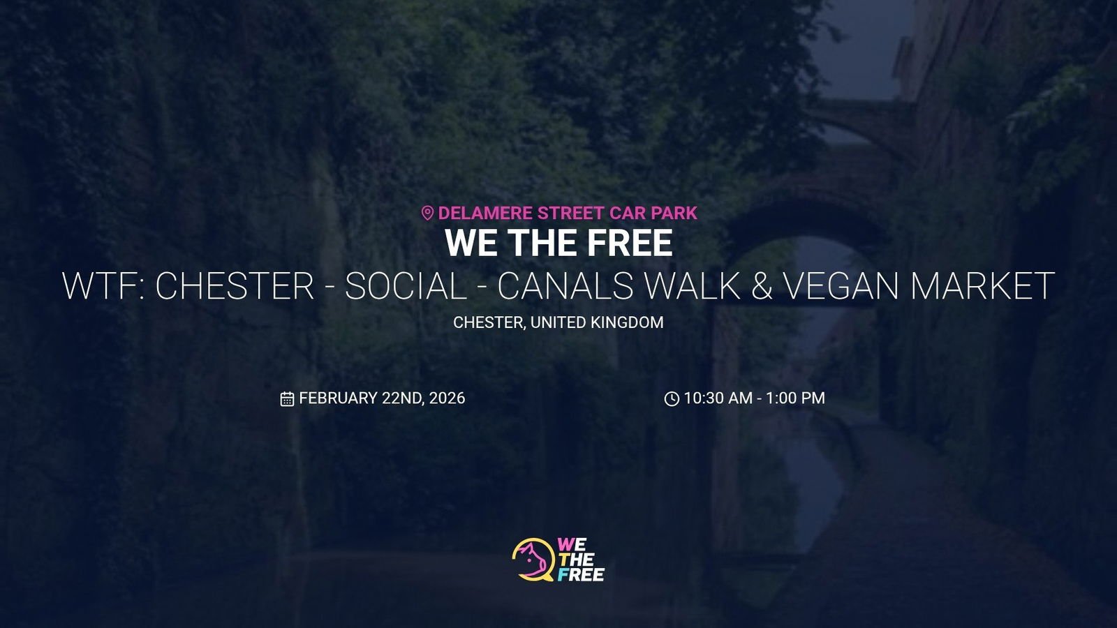 Join us for a relaxing walk around Chester's canals and river, followed by a visit to the vegan market in the Town Hall Square. If you'd like to join for just one of the walk or the visit to the vegan market, that's absolutely fine too!