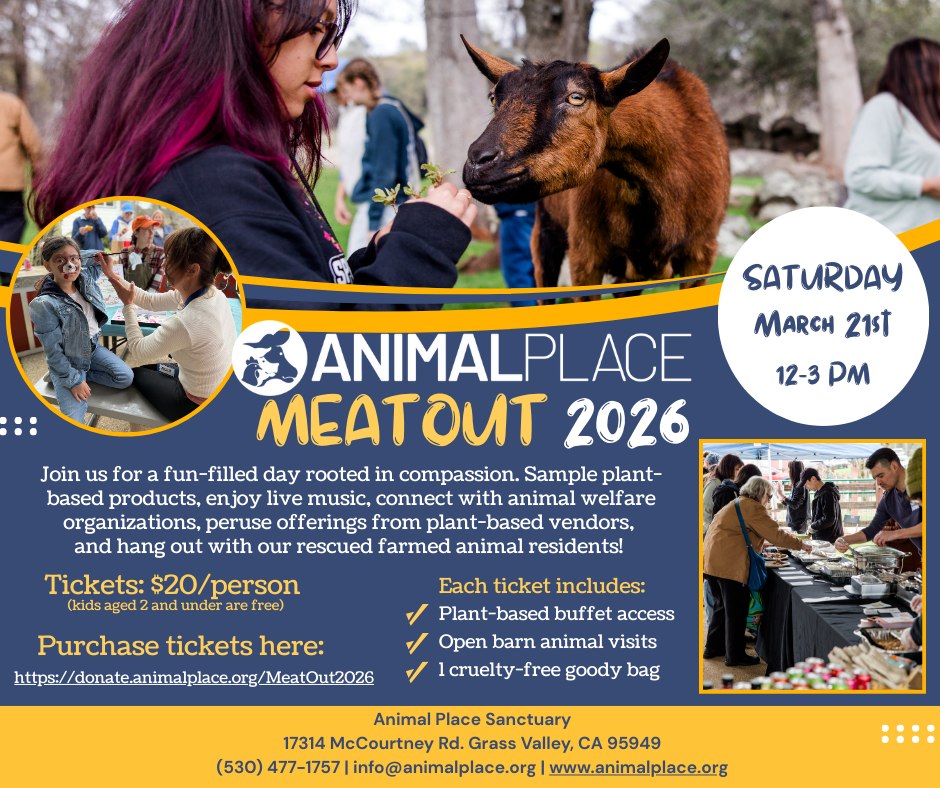 Join us for a fun-filled day rooted in compassion. Sample plant-based products, enjoy live music, connect with animal welfare organizations, peruse offerings from plant-based vendors, and hang out with our rescued farmed animal residents!